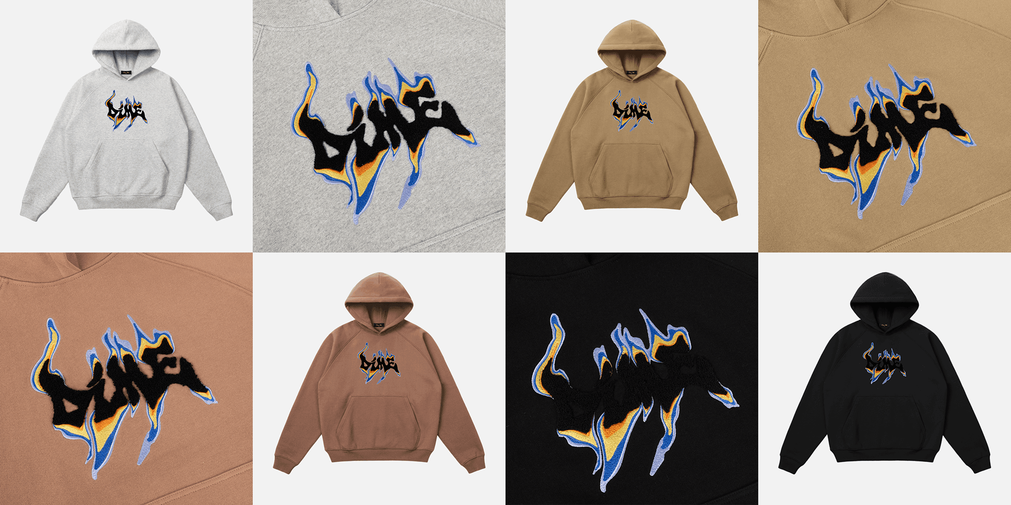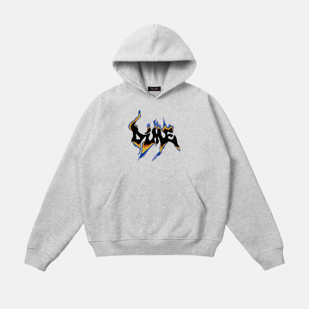 Graphic / hand-drawn type I cooked for this @dimemtl hoodie — Seeing a puddle of water with some gasoline in it is like a psychedelic experience at an early age. 🌈🛢️ Spring ‘26 drop — March 21st, 1PM EDT www.dimemtl.com/products/sp26-oil-hoodie-black